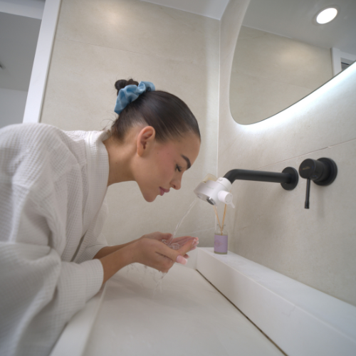 ✔️ Eau purifiée et adoucie – Élimine impuretés, chlore et métaux lourds pour une peau protégée.